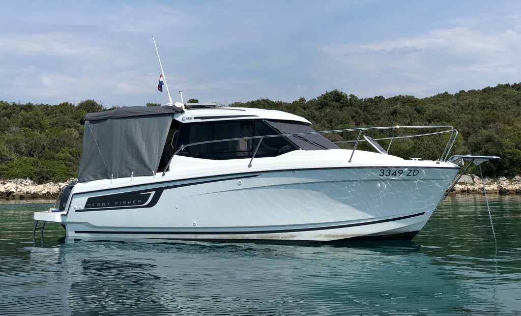 Merry Fisher 695 has solar panels that will provide enough energy for your fridge and chargers, but in case of a cold winter night we would recommend that you spend the night in marina. We’ll provide an additional heater for 220 V that you can use while staying in the marina.