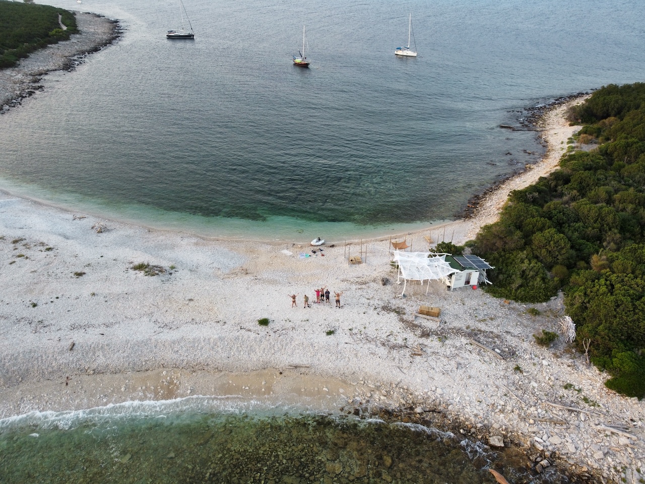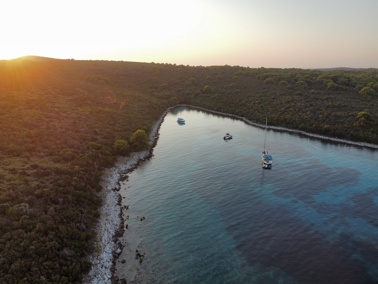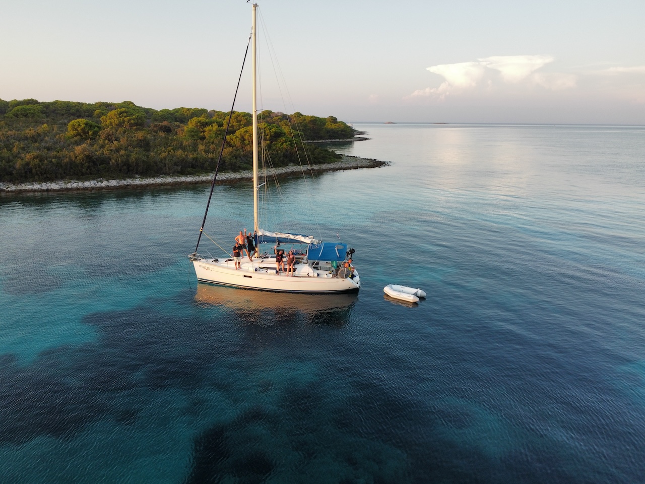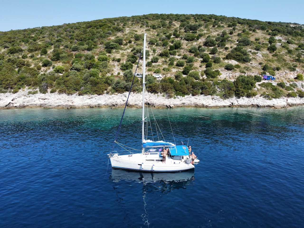 Our dear guest Marco recently treated us to a breathtaking series of aerial photographs featuring our beloved boat Sun Odyssey 36i Agatha. Captured with a drone, the images offer a unique perspective of the crystal-clear blue and turquoise waters, showcasing the unparalleled beauty of Croatian islands Molat and Dugi Otok.