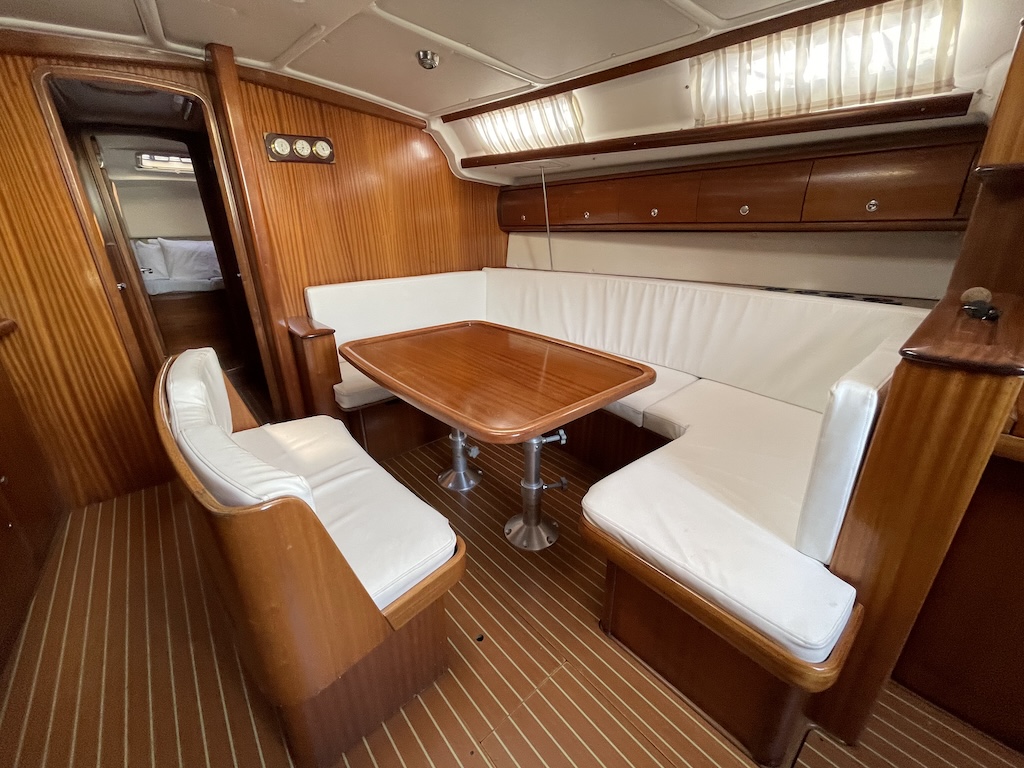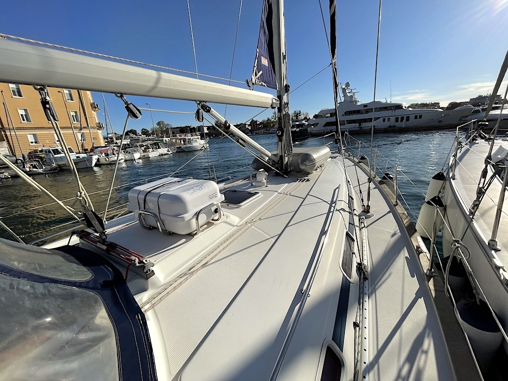 In 2020 she changed her bow thruster and in 2021 she decorated her saloon interior with a brand new eggshell white seating upholstery. In 2023 she got new bimini and sprayhood. This season (2025) new main sail is aboard as well as A/C in saloon area (only on shore power).