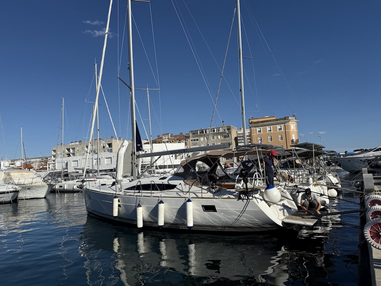 This wonderful boat is safely moored in our home base in the very centre of Zadar, in Marina Zadar Tankerkomerc.